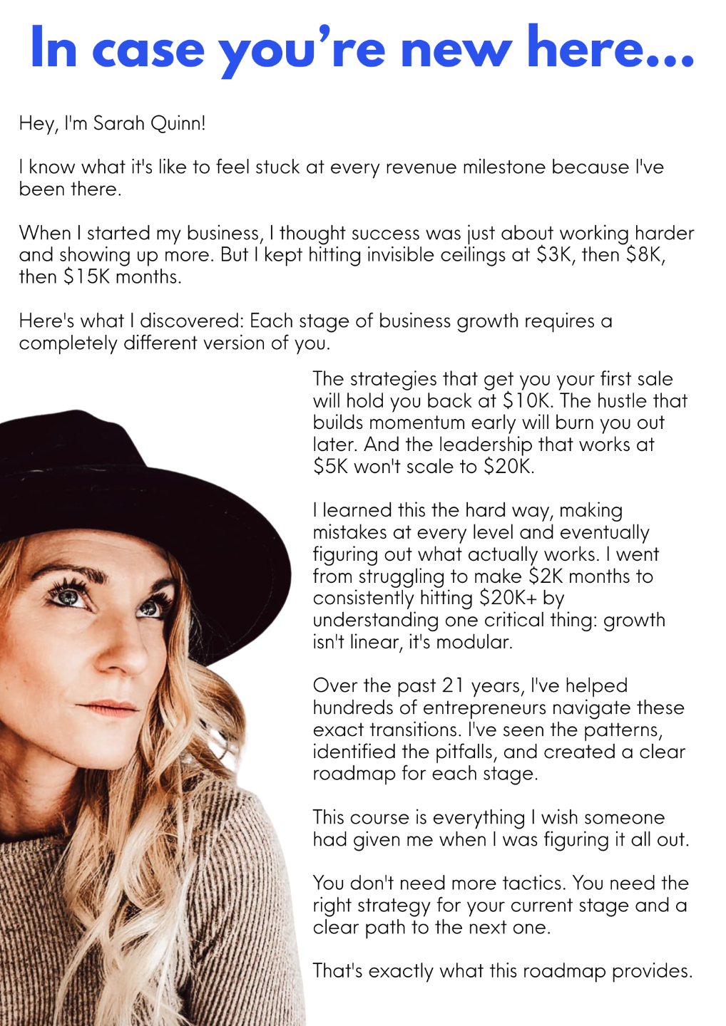 This isn't another generic "business course." It's a stage-specific roadmap that meets you exactly where you are and shows you the precise next steps for sustainable growth.